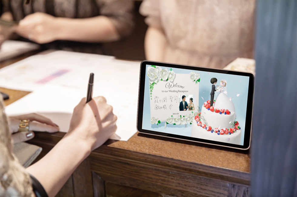 おふたりの手書き文字でゲストをお出迎え。