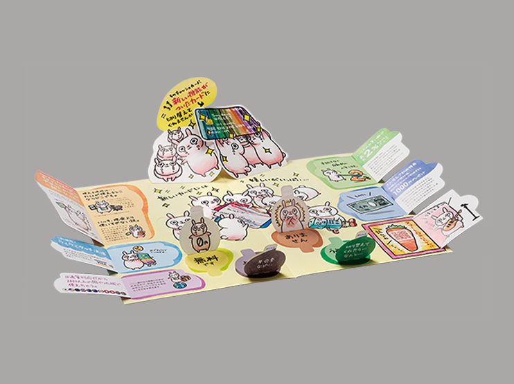 知育教材として、シール付きポップアップ仕様の実績もございます。