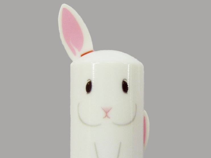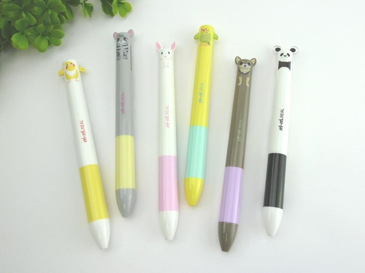 軸にプリントされたキャラクターに合わせ、ノック部分を耳や手など、さまざまなバリエーションに変えることができる2色ボールペンです。芯/インク 赤・黒 ※他の色の組合不可